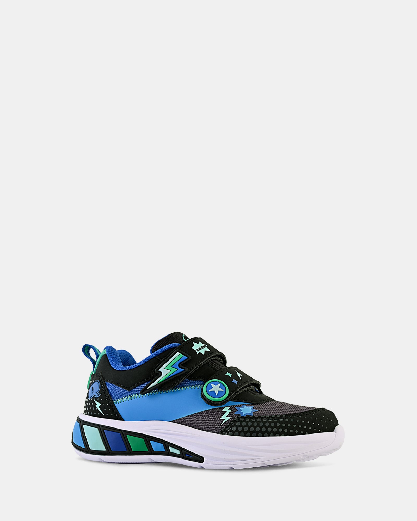 Power up this summer with Apollo. the newest superhero in our light-up sneaker team. With stars. bolts and a burst of midsole power. Apollo is ready to light up any adventure. Designed for comfort and support. it features a contoured footbed with removable insoles for a wider fit. padded collars and reinforced toe caps for extra durability. With striking lightning bolts and bright moves. Apollo is for the kid who’s always on the go. ready to save the world and unleash their inner hero.