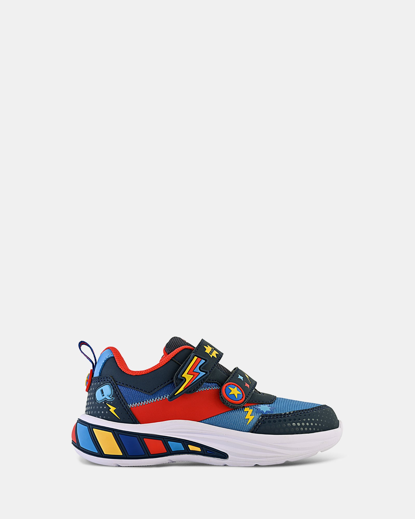 Power up this summer with Apollo. the newest superhero in our light-up sneaker team. With stars. bolts and a burst of midsole power. Apollo is ready to light up any adventure. Designed for comfort and support. it features a contoured footbed with removable insoles for a wider fit. padded collars and reinforced toe caps for extra durability. With striking lightning bolts and bright moves. Apollo is for the kid who’s always on the go. ready to save the world and unleash their inner hero.