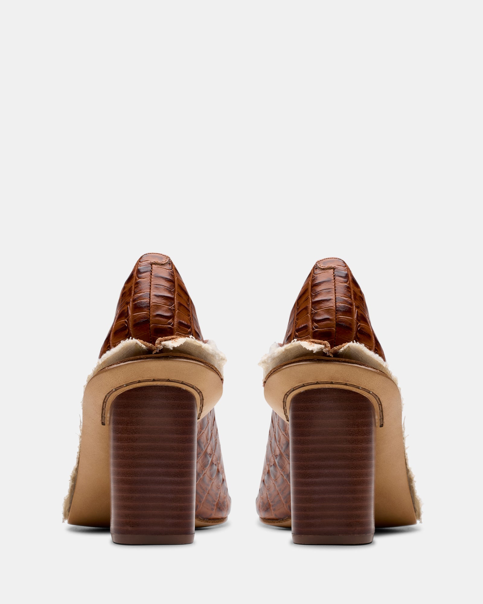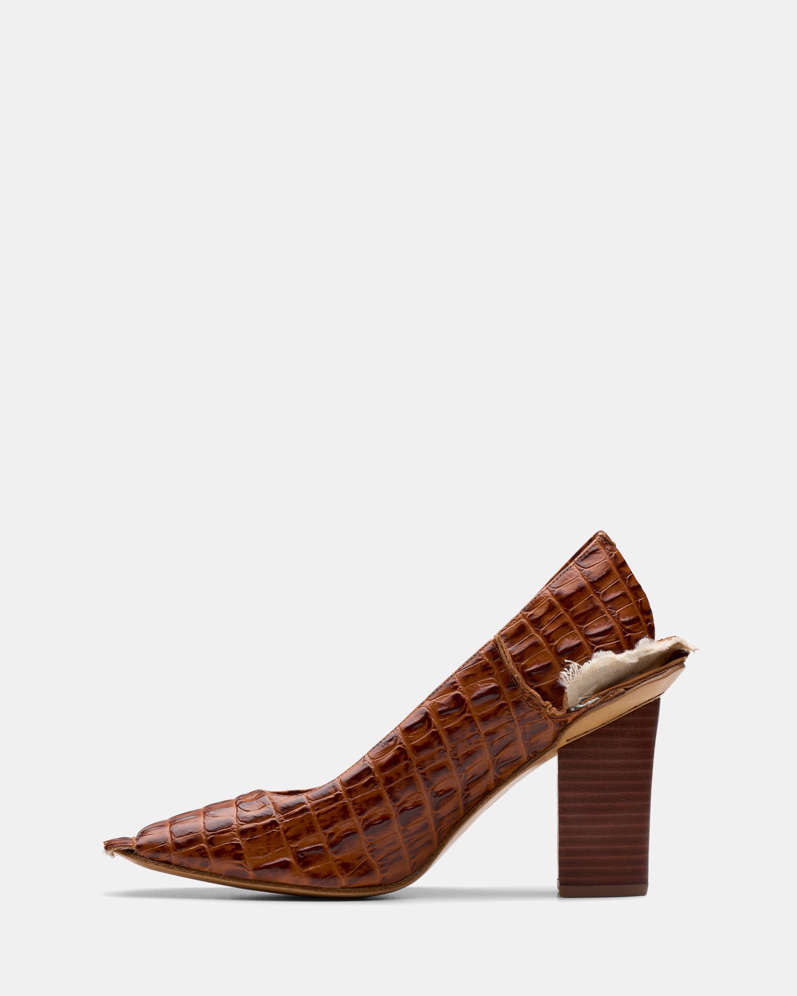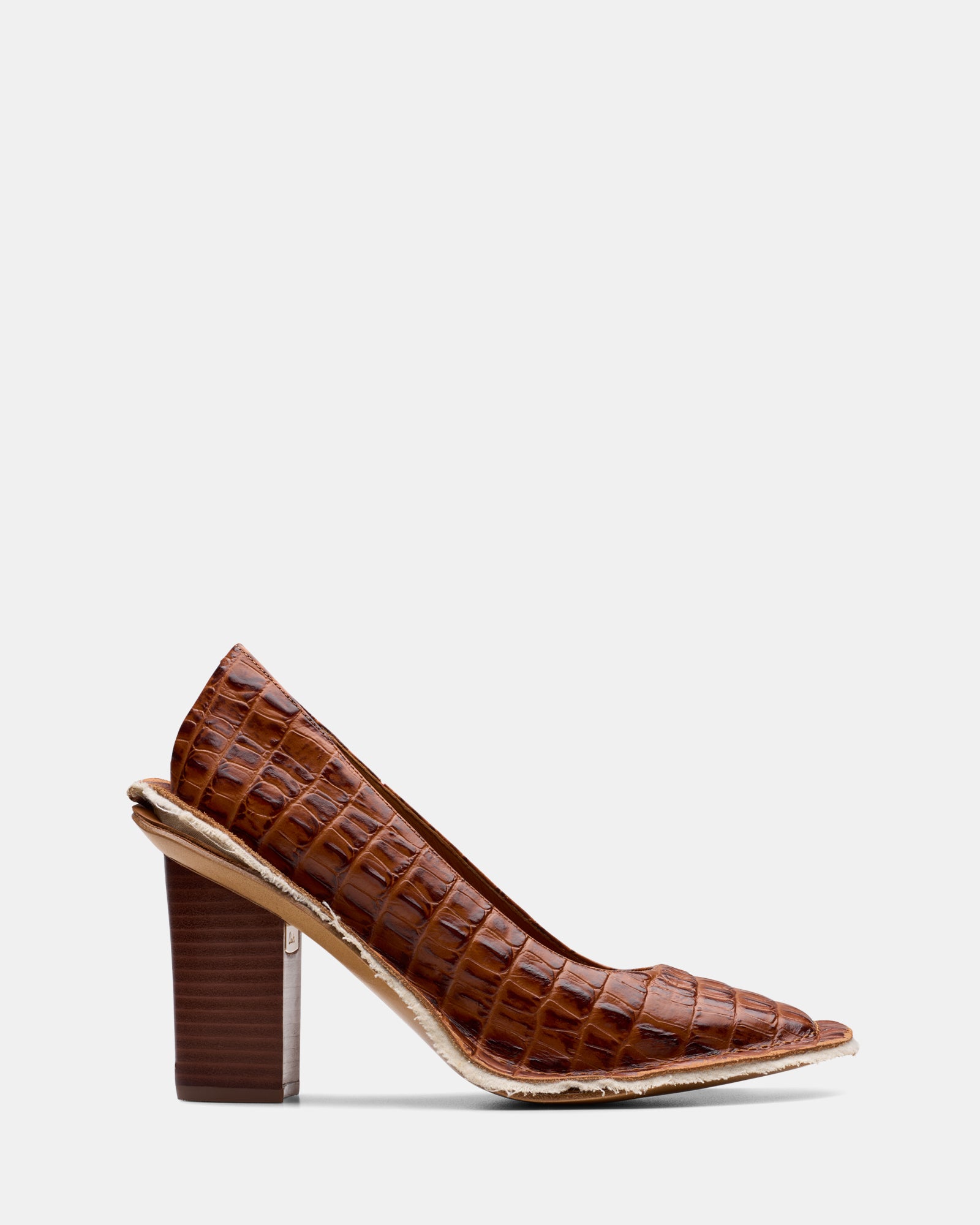 • Premium croc-embossed pretzel tan leather upper with exposed seam detailing