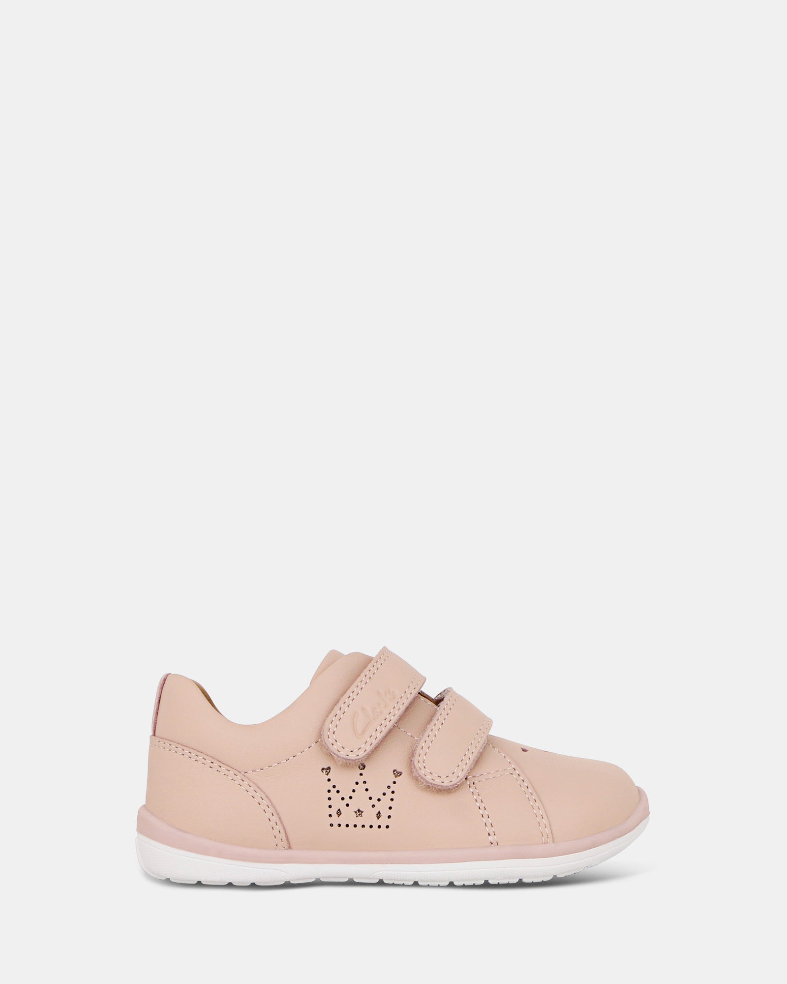 Cute. comfortable. and always on-trend. the Macy Sneaker is a must for adding style to your little girl’s wardrobe. The simple sneaker is accented by a sweet crown design and fitted with double self-fastening straps for a secure fit.