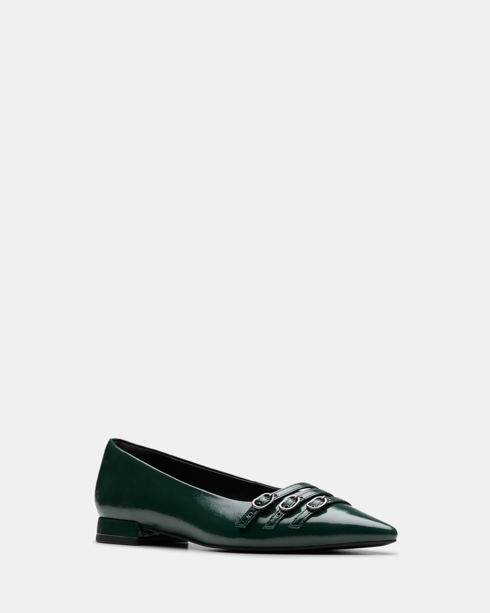 The dressy flat shoe to style on repeat this season. Sensa15 Strap lands in dark green leather. We’ve designed it with statement buckles and a sleek. trending pointed toe. combining polished. dressed-up aesthetics with a tough. biker-inspired twist. We love it with tailoring or denim. complementing both your work day and weekend wardrobe.