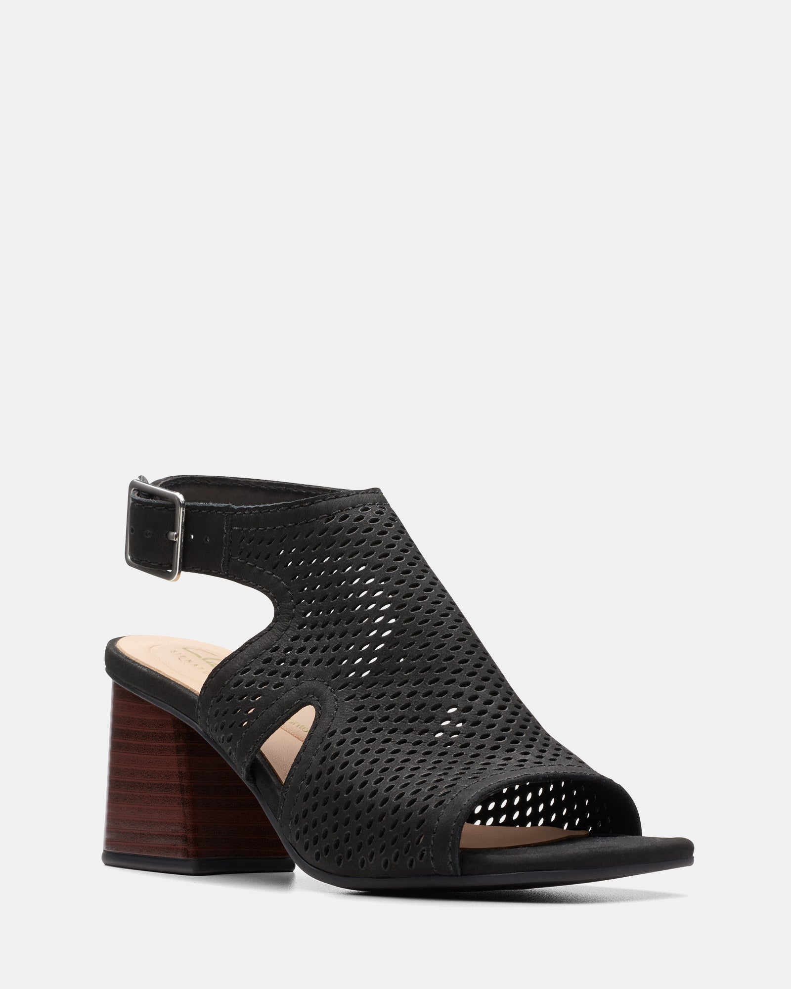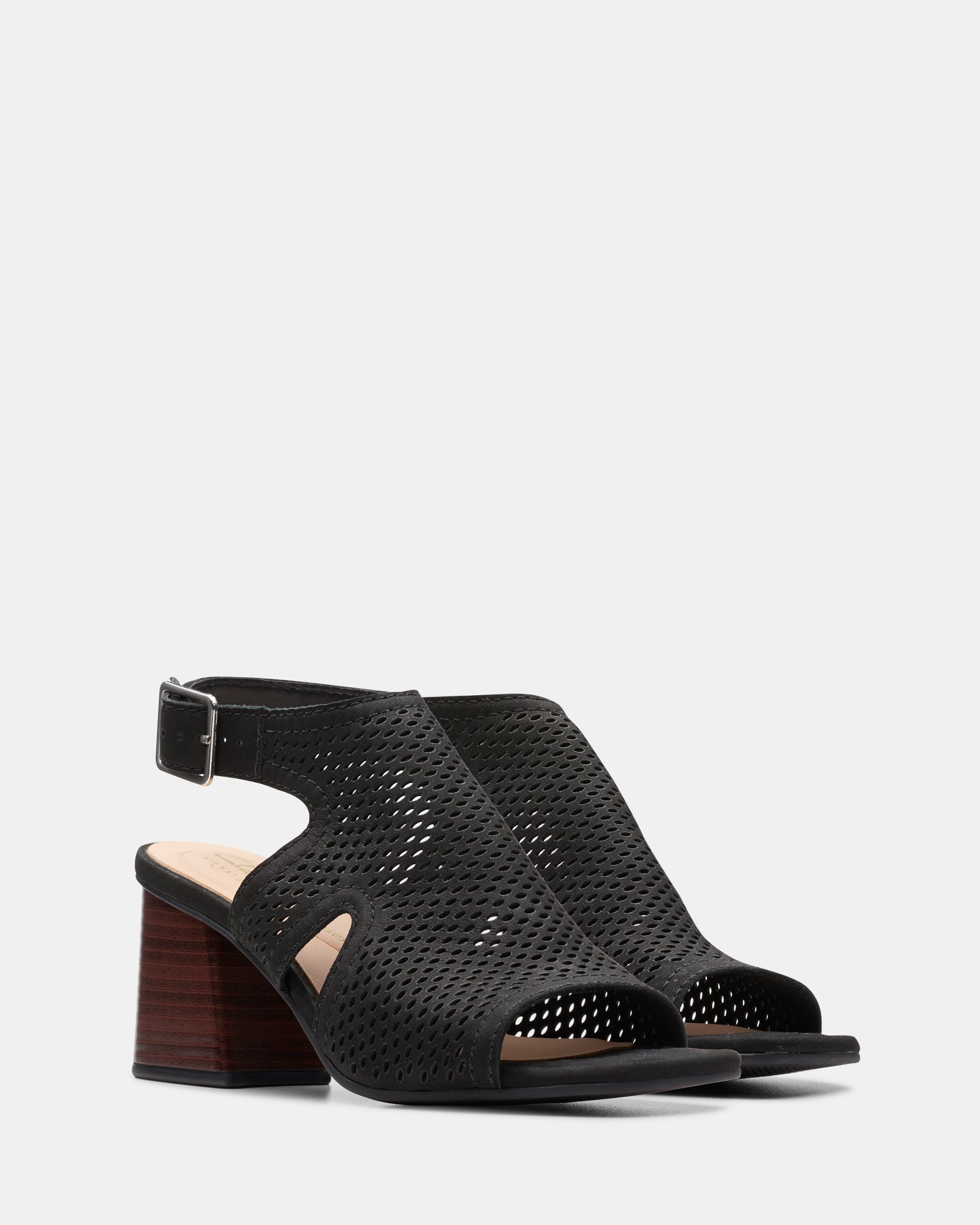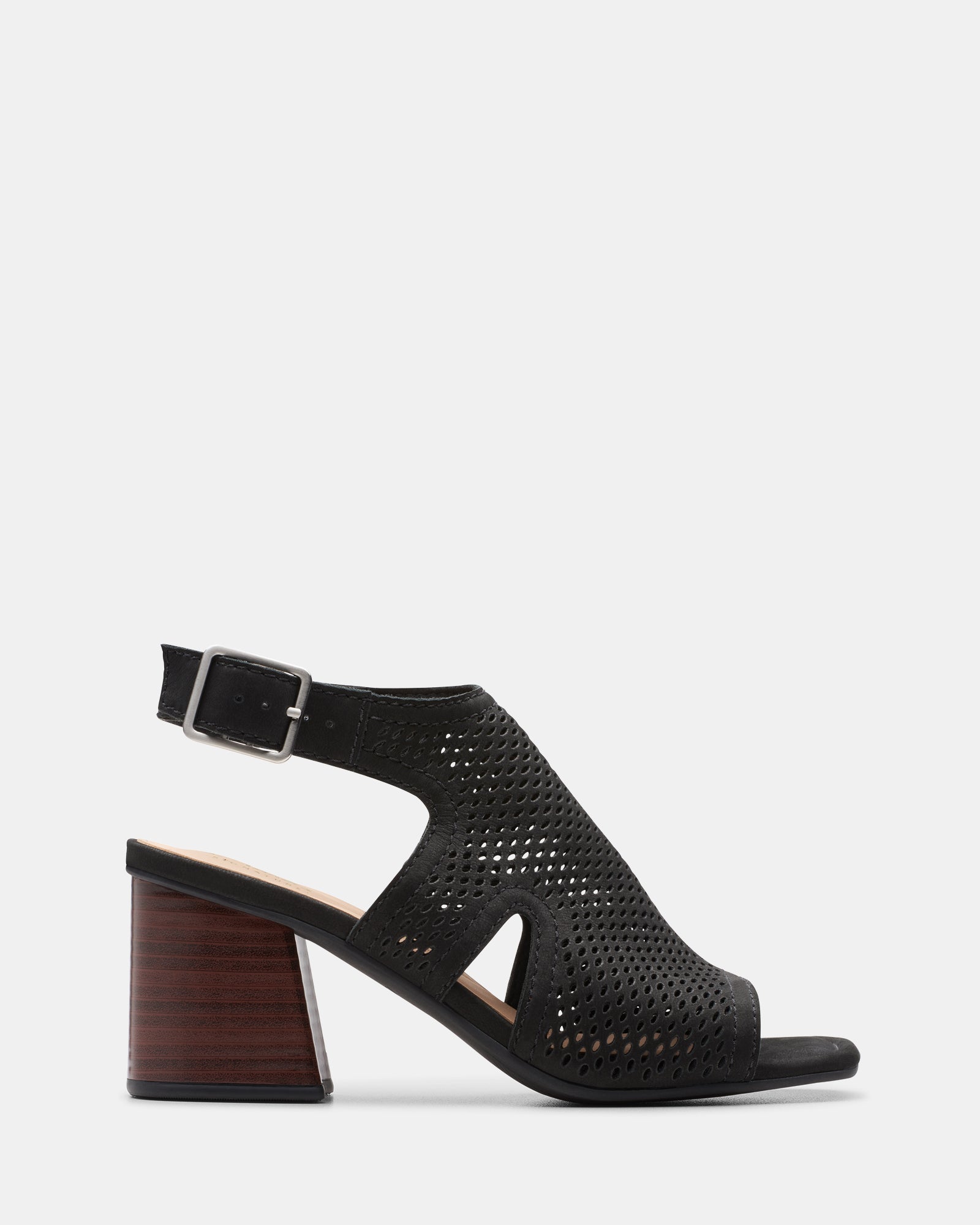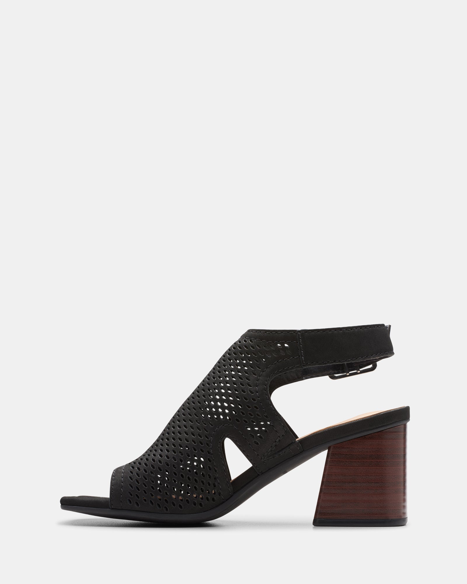Our new staple heeled sandal Siara 65 Flow combines a contemporary square toe shape with refreshed core colourways and stacks of summer comfort. Butter-soft black nubuck uppers with cut-out detailing complement the foot perfectly – while our pillow soft Contour Cushion footbed and flexible sole support your natural walking motion. Set on a modern stack-effect heel for effortless everyday wear.