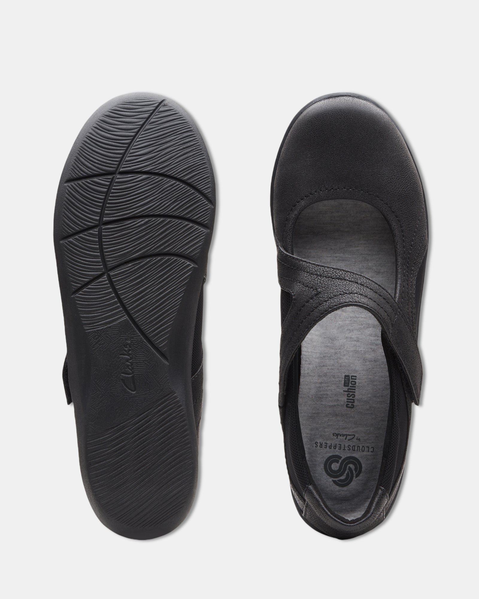 Boost those days on-the-go with Sillian Bella. our staple everyday shoe. With breathable black leather-look uppers for ultra-versatile wear. this smart-casual silhouette makes use of a cushioned footbed and adjustable straps to keep active feet comfy and secure. while a grippy sole makes every step one you can count on.