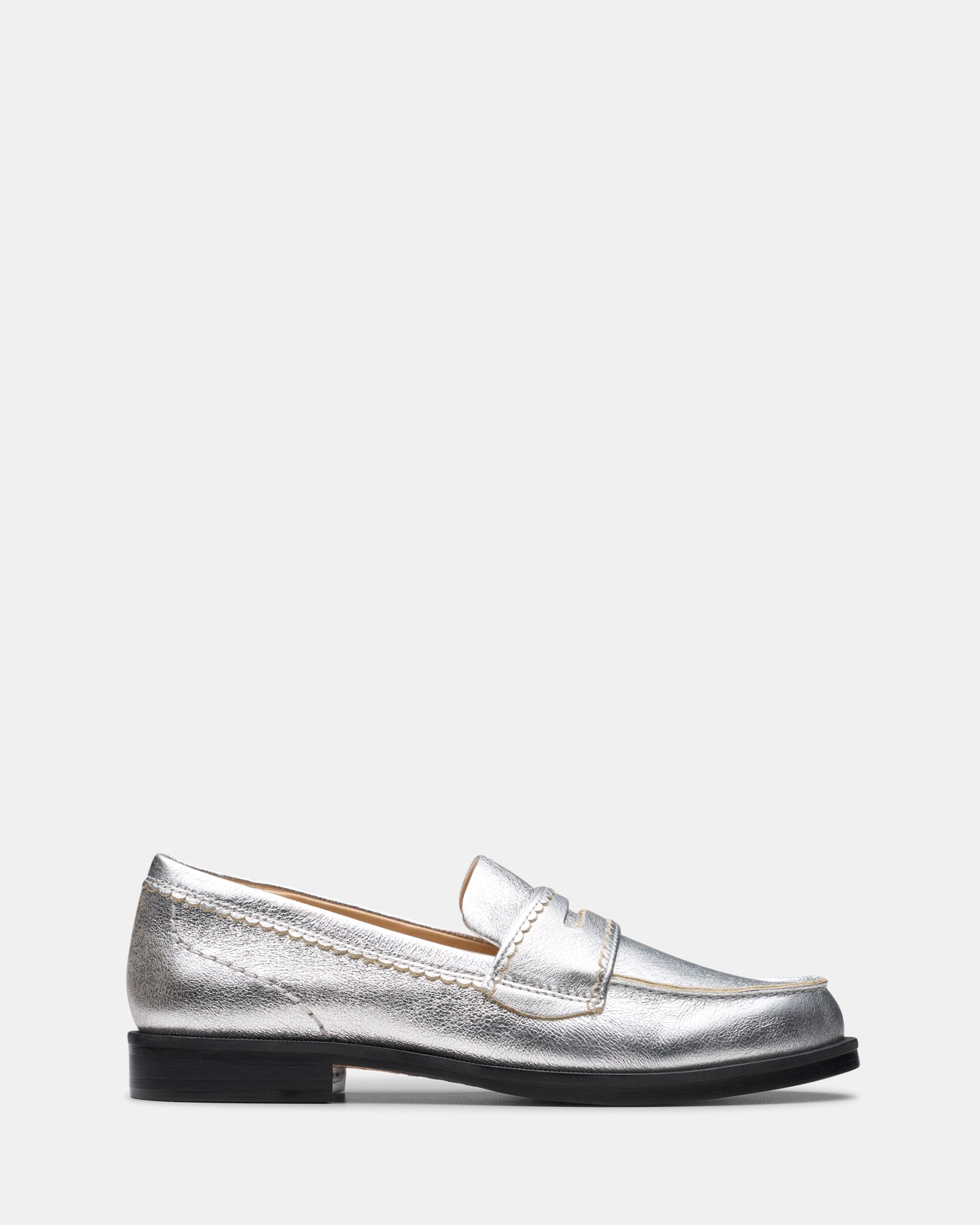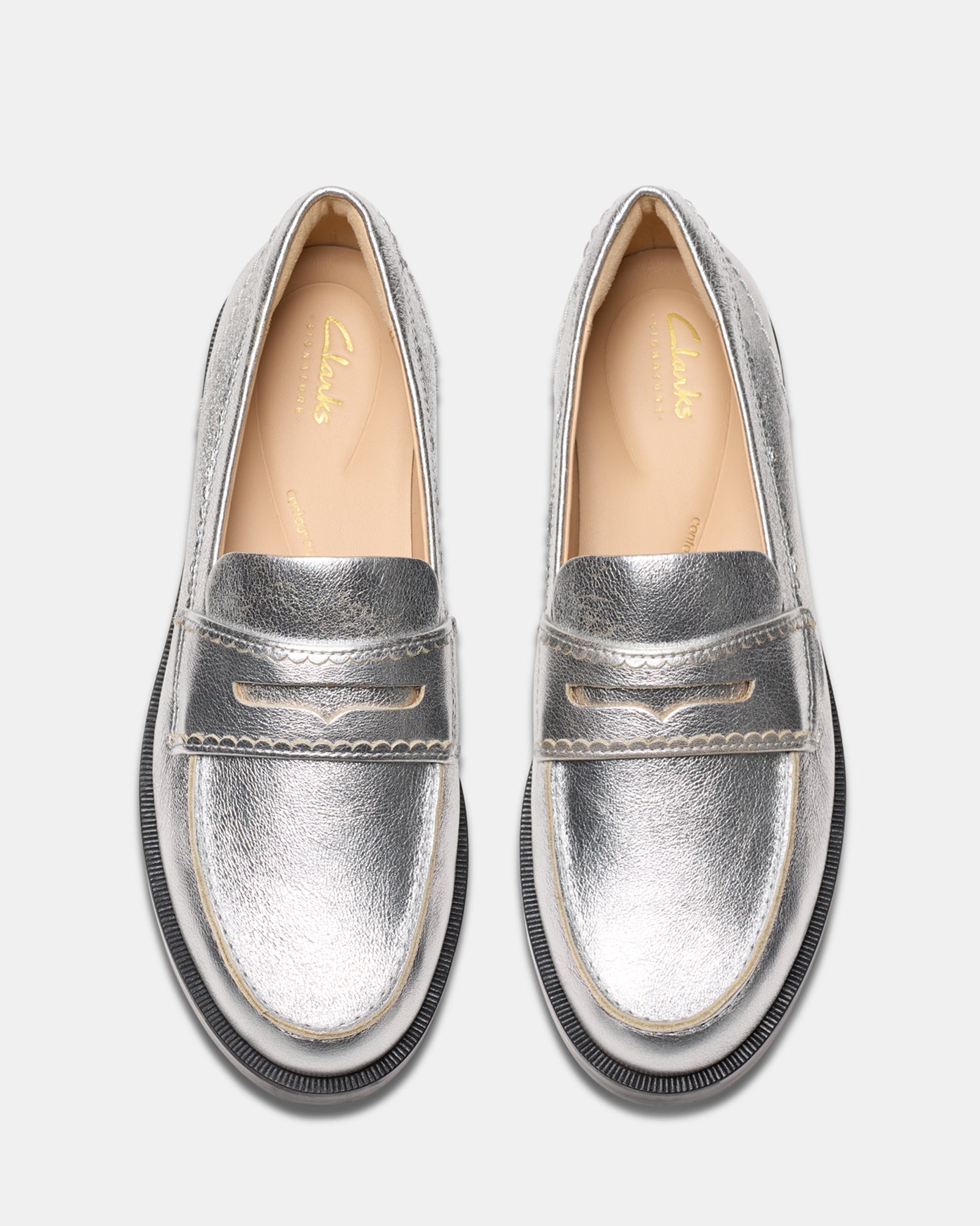 Designed for real life. your life ??our Straven Edge loafer is a hybrid shoe expertly crafted for easy everyday styling and office days alike. Prepped for statement wear in shimmery silver leather. it features a scalloped trimmed upper and wheeling rand detail to create a crafted aesthetic ??while our signature Contour Cushioned footbed is expertly placed for comfort that lasts as long as your day does.