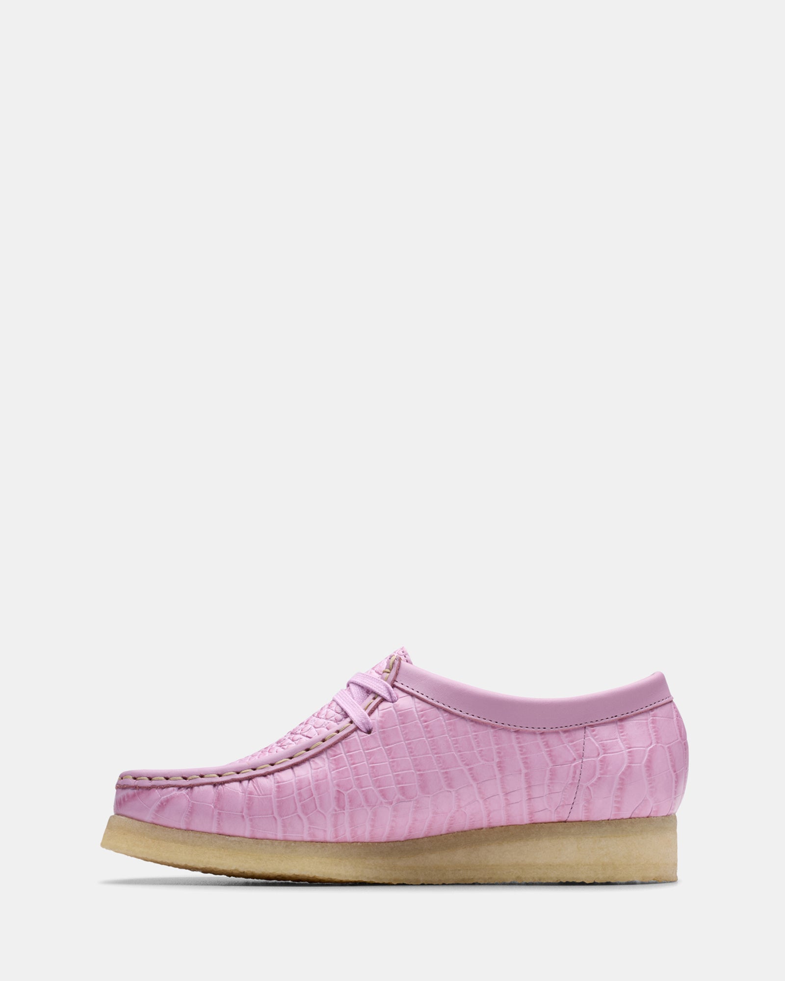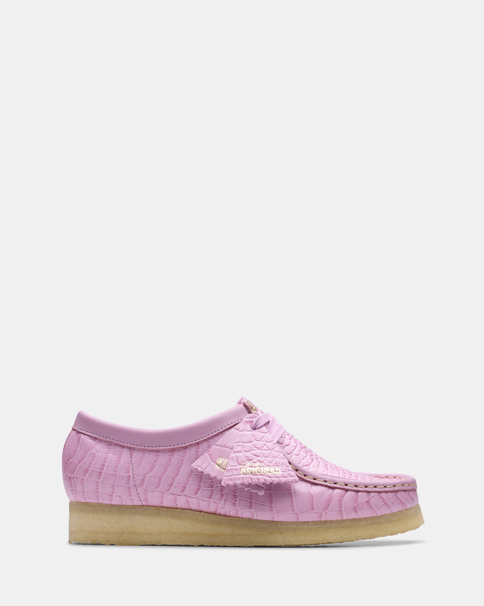 Prepped to tackle this season and the next. our legendary Clarks Originals Wallabee??arrives with a statement finish. Crafted croc-effect uppers make a play on luxurious texture. while each pair is perfectly balanced with our inimitable pebble crepe soles. Proving it’s all in the details. heritage stitching. tonal logo fobs and laces complete our stone cold classic.