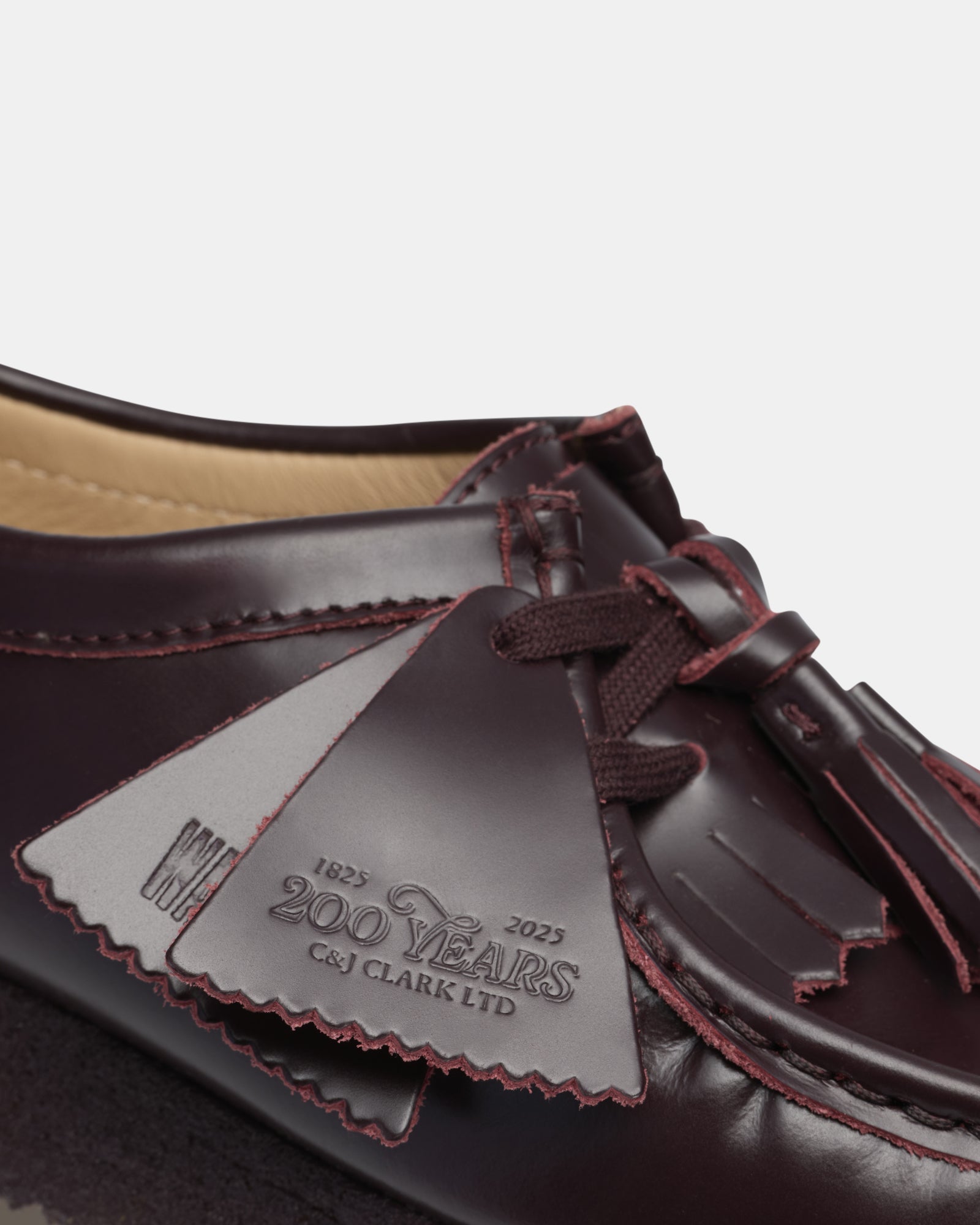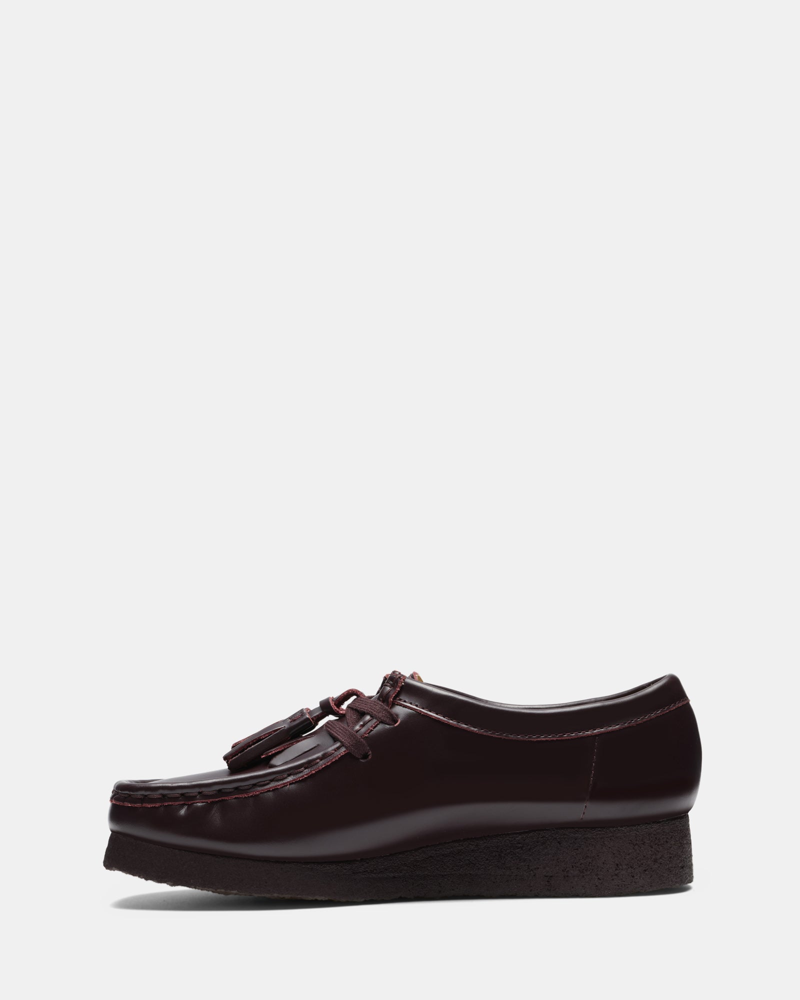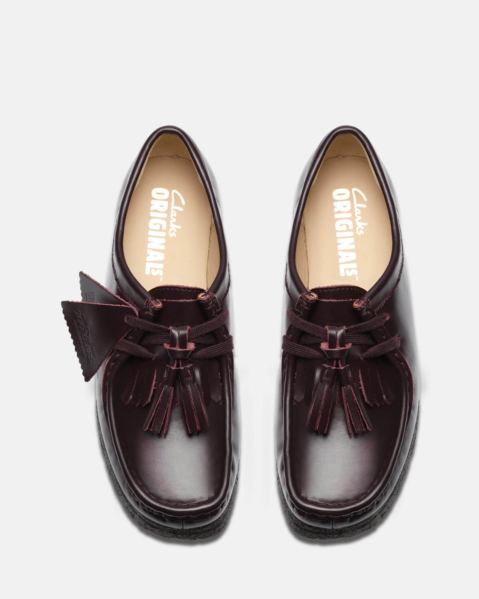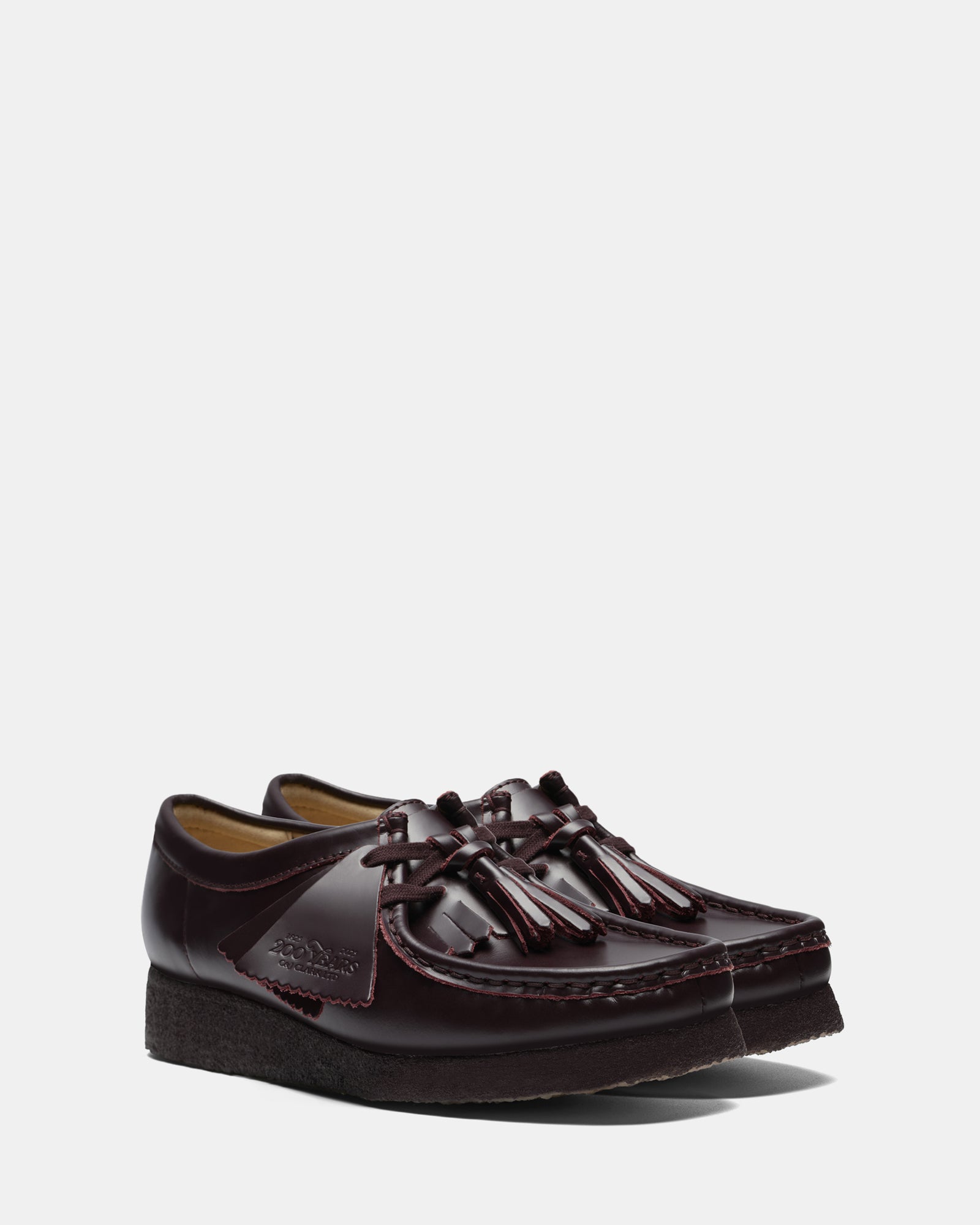 Crafted from premium polished dress leather uppers. this Wallabee features lace tassels and a removable tonal kiltie. offering versatility and a touch of flair. Designed with comfort and durability in mind. the natural pebble crepe sole features a black sole spray. while the moccasin construction and hand-stitched apron seam ensure a timeless. handcrafted appeal. This loafer-inspired design is perfect for those who want to bring a refined edge to their wardrobe.